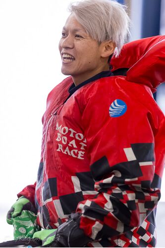 1Rが締め切られて、係留所からも選手の姿が消えた、ちょうどそのとき、宮地元輝が係留所へと降りていくのが見えた。モーターを動かすことがもうできないタイミングでどうしたのだろう、と見ていたら、おもむろに水面に手をズボッ。「冷たっ!」 そりゃそう…
