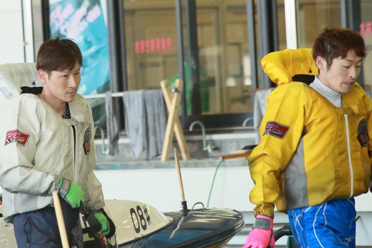 しかし、菅の4カドまくりは不発。カド受け3コースの赤岩善生にがっちりと止められて、目論見どおりにはならなかった。もちろん、盛本も北野も同様だ。ピットに戻ってきた菅は、さすがにガックリ。カポック脱ぎ場では顔を歪めて、天を仰いだりもしている。菅に寄り添ったのは森高一真で、見た目イカついけど優しいんです、森高先輩は。菅としてはかなり悔しい結果となってしまったが、前を向いて復活戦でリベンジを!